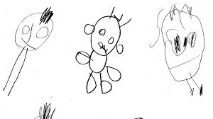 Here are some examples. Do you see how these children have omitted body parts from their drawing, some with legs coming from the head?